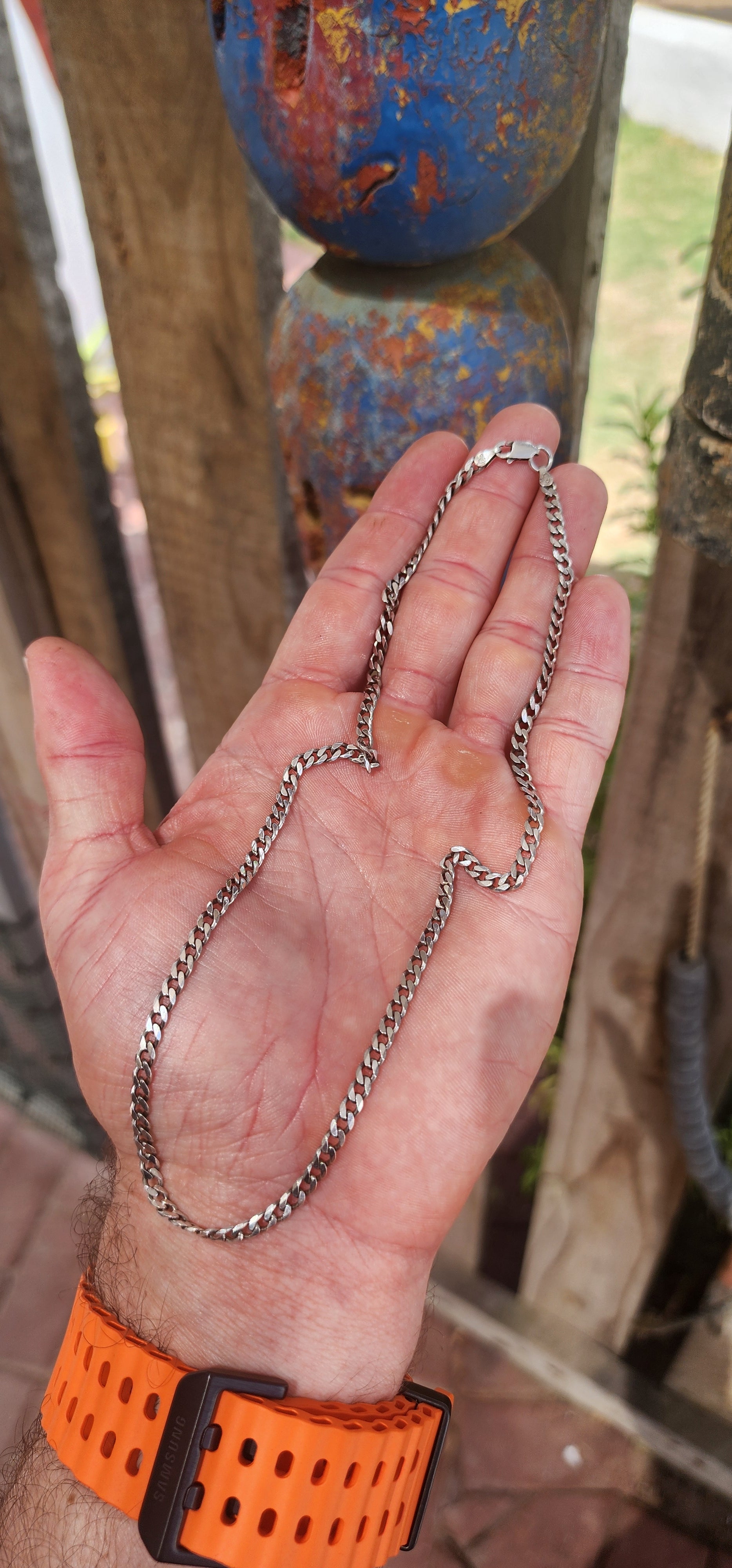 Crafted in solid sterling silver, this chain features the iconic Cuban (curb) link design: closely interlocked, slightly flattened links that lie smoothly against the chest while still having that bold, structured presence.