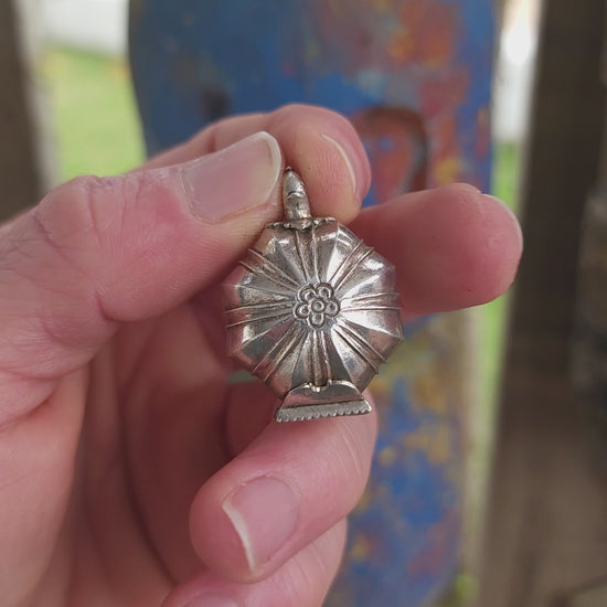 This marvelous and unusual antique sterling silver locket comes from Sri Lanka and is steeped in rich cultural tradition. Crafted in a bold hexagonal form, it is designed as a hinged container once used to hold betel and lime paste—an essential element of Sri Lankan and broader South Asian daily life for centuries.