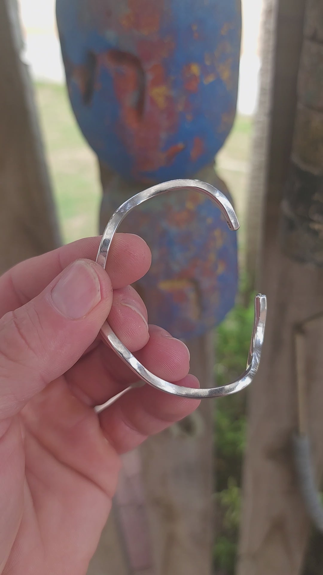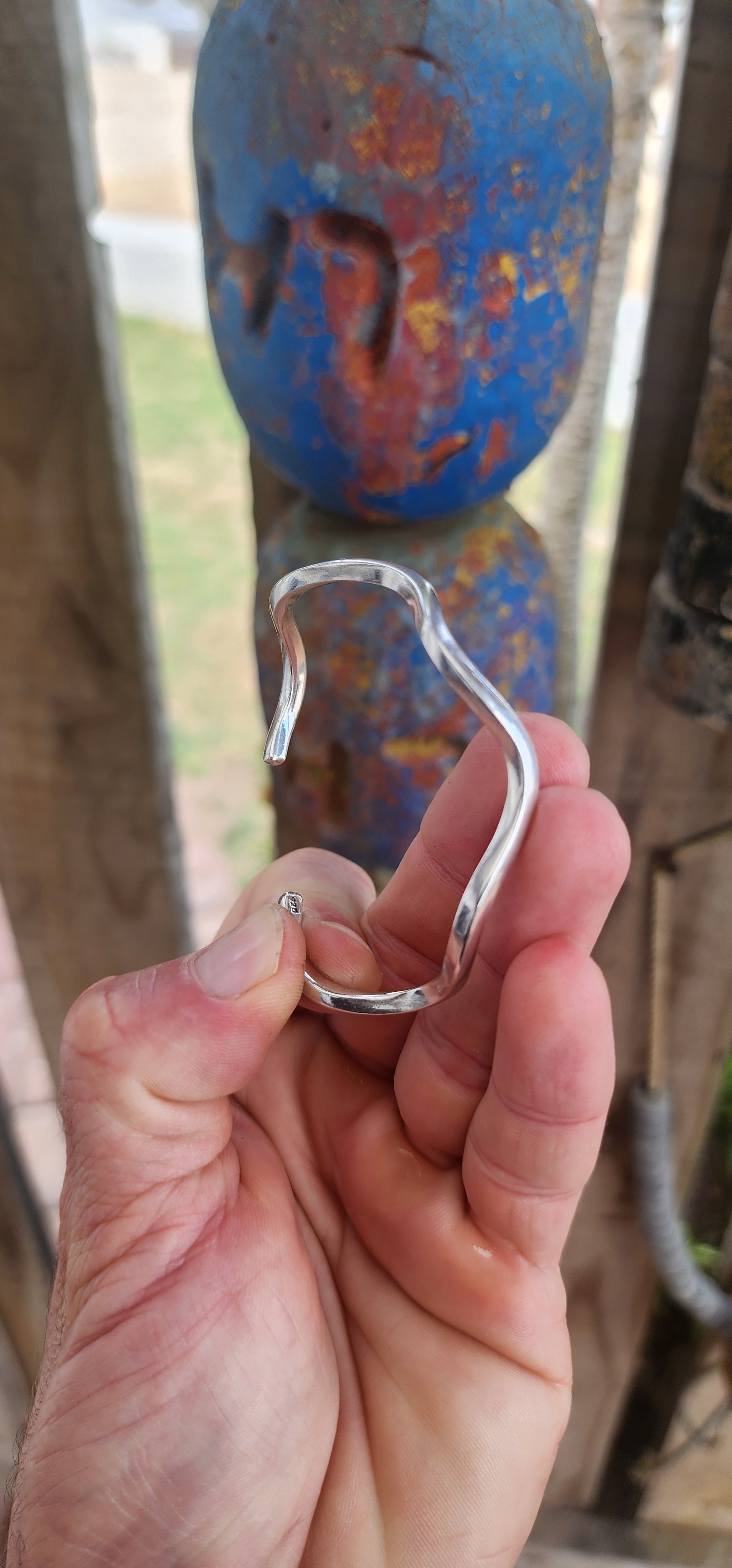 Artsy Modernist Sterling Silver Wave Cuff Bangle.