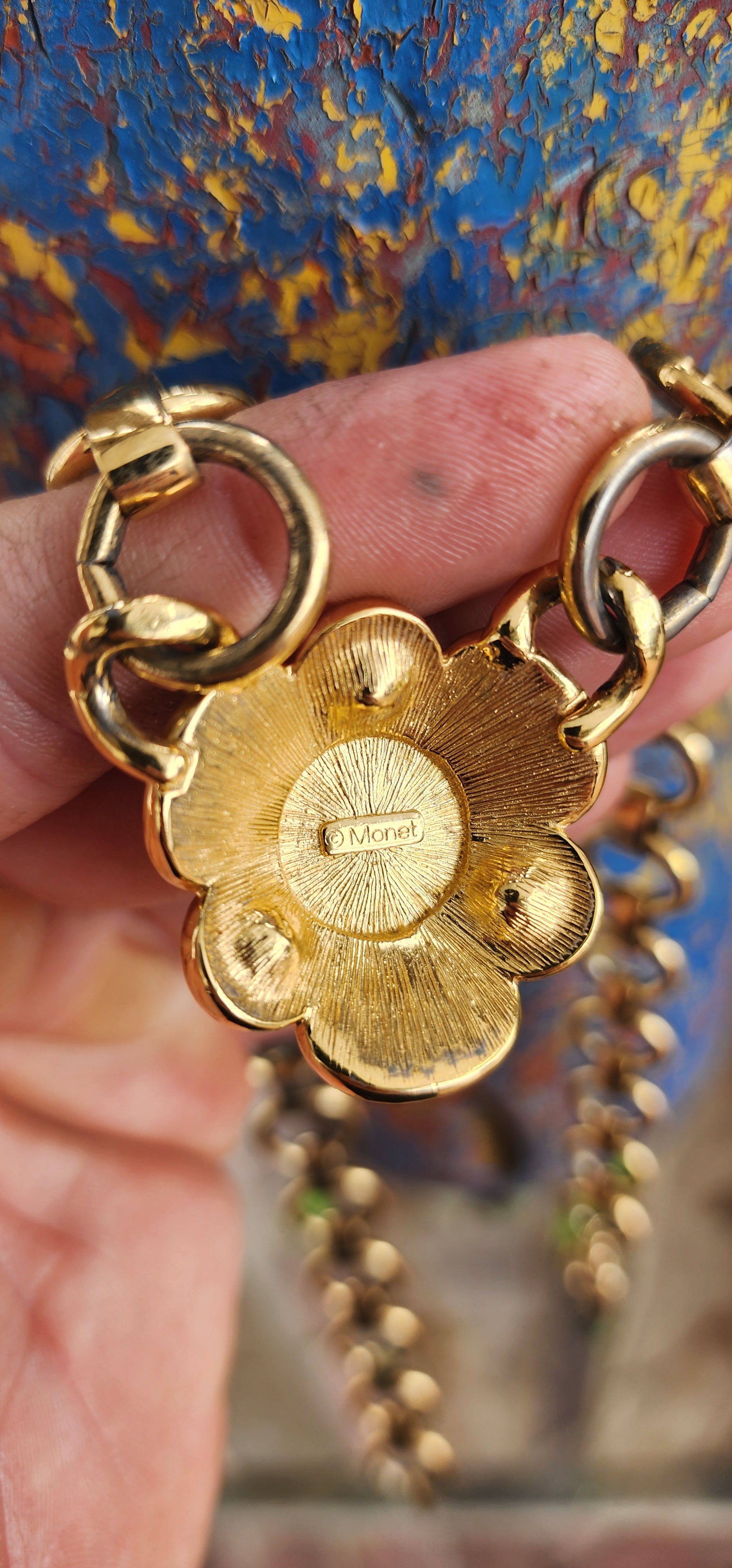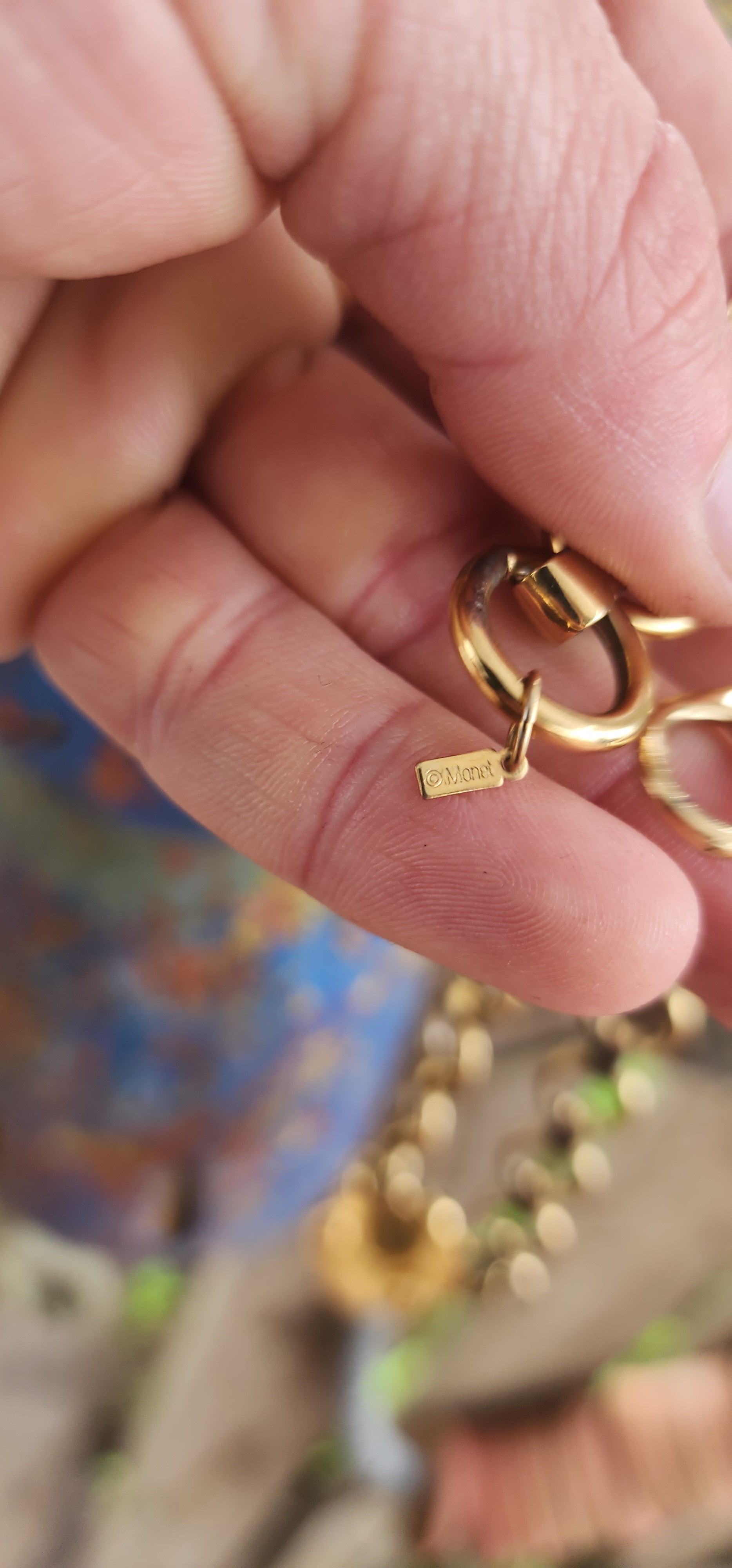 Vintage circa 1960s chunky designer costume necklace by Monet, the American jewelry house celebrated for its luxurious gold-plated finishes and mid-century glamour.